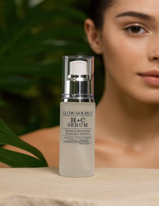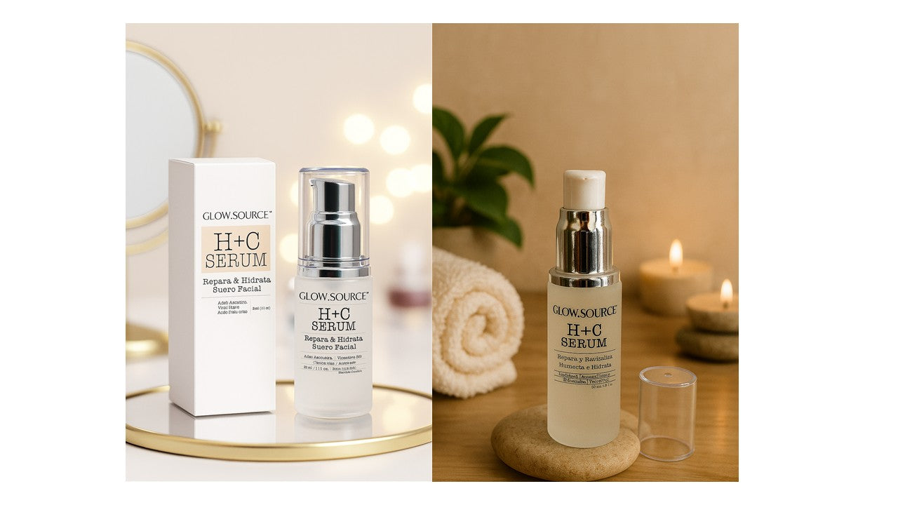 GLÔW.SOURCE Serum Vita C HC. Suero Facial con Aloe Vera, vitamina E y C mas Ácido Hialurónico, Ayuda a Reparar Revitalizar Humectar e Hidratar, está diseñado con ingredientes naturales para todo tipo de piel. Su fórmula está diseñada para ayudar a tu piel